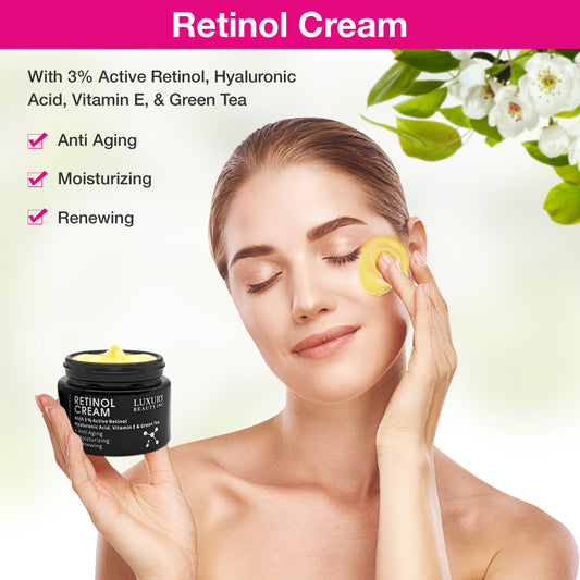 Luxury Beauty Inc Retinol Cream 3% Active Retinol Hyaluronic Acid Vitamin E Green Tea Anti-Aging Moisturizing Renewing Skincare Collagen Vitamin C Face Cream for Dark Spots, Repair Skin & Anti-Aging